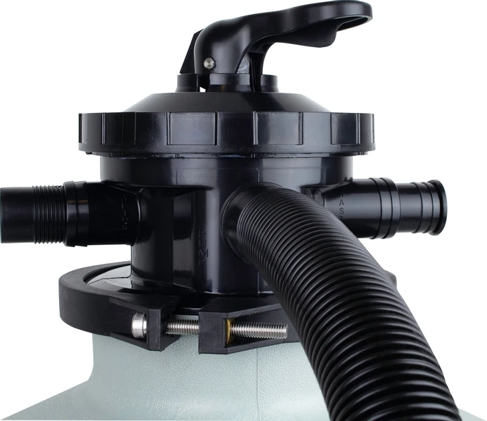 De zandfilterset SP 460 is een zeer gunstig geprijsde budget zandfilterset voor kleine opbouwzwembaden. We adviseren deze filterset voor opbouwzwembaden met een maximale inhoud van 24.000 liter. De filterset is voorzien van een polyethyleen zandfilter in combinatie met een zeer eenvoudige zwembadpomp. Door middel van de 6-weg kraan bedien je gemakkelijk de verschillende standen van het filter.
